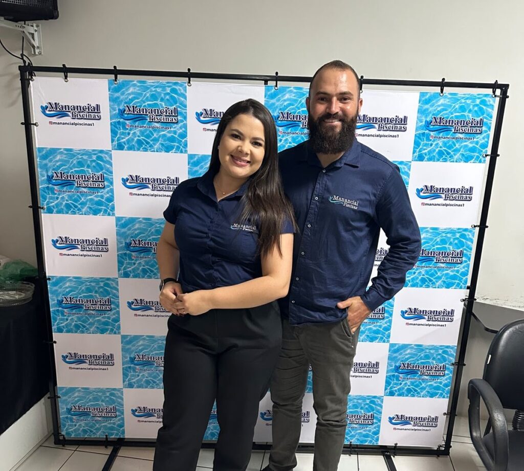 A Manancial Piscinas é mais do que um negócio é a realização de um sonho que começou pequeno, mas com visão de ser grande. Helias, formado em Administração, atua há mais de 10 anos no ramo de piscinas, com experiência, técnica e um olhar atento às necessidades de cada cliente. Layane, sócia e apaixonada por comunicação, cuida da parte de marketing e atendimento, levando nossa marca para mais pessoas todos os dias. Construímos juntos uma empresa baseada na confiança, no cuidado e no compromisso com quem busca qualidade de vida e lazer com segurança. Acreditamos que grandes águas nascem de pequenos mananciais e estamos aqui pra transformar a sua piscina em um verdadeiro refúgio.